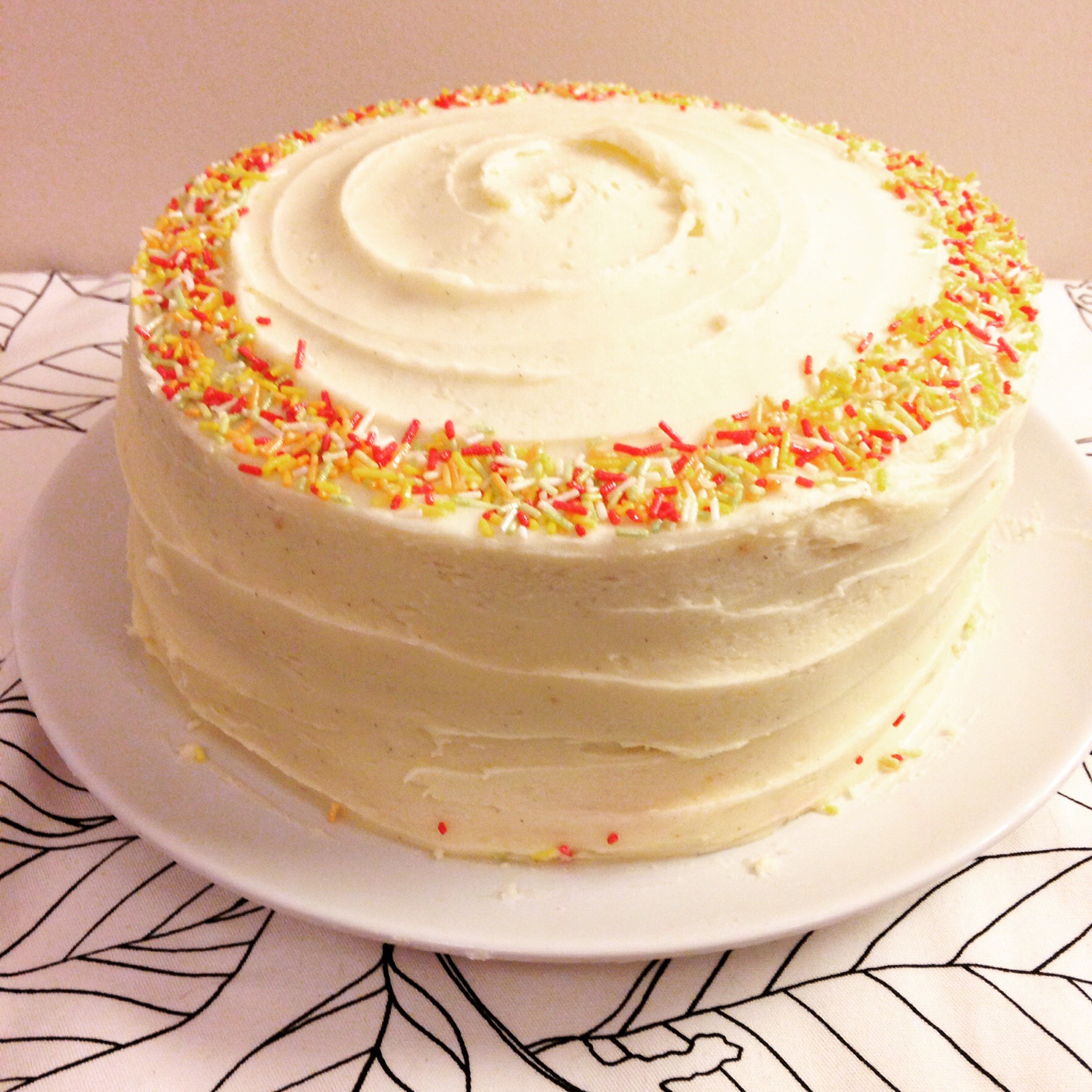 - As I was using 3 layers of sponge for this cake, I used 2 batches of the frosting recipe as I wanting the sides as well as the top to be covered, if you prefer to leave the sides free of icing then one batch of the frosting should be enough.