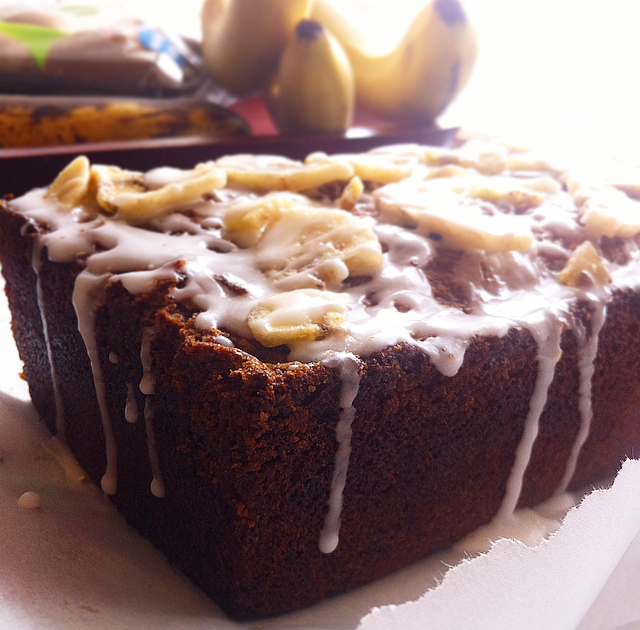 - Simply mix the icing sugar with 2-3 tbsps of hot water until you have a runny mixture. Drizzle over your cake and scatter some crushed and whole banana chips on top…hey presto!