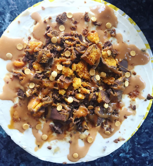 I absolutely love cheesecake and its the only ‘cake’ my Dad will eat, it also happens to be my boyfriend’s favourite too and as I’m 18 months into writing this baking blog (which he reads) I’m not sure how much longer I could put off making them both one. The below is a honeycomb dream, it has honeycomb sprinkled within the cheesecake filling as well as being towered on top (sadly its not home-made honeycomb, that too is on my list) and to make it even better, it is served on a sweet Golden Oreo base and drizzled in caramel.