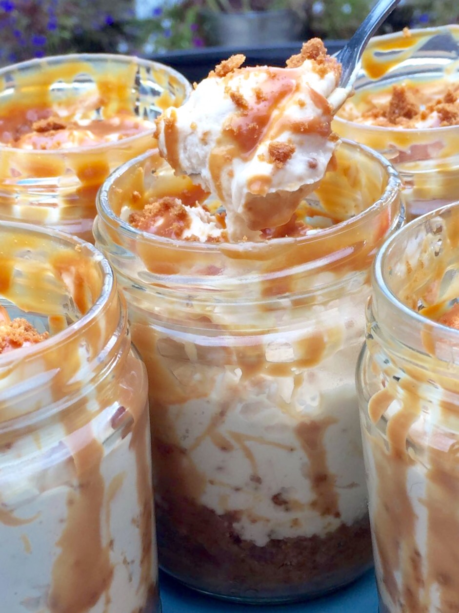 Whether its spooned into cake, buttercream or slathered on toast its a winner each time but its particularly served best in a cheesecake! These are easy to make and look like a real showstopper when served up a bit differently in these jam jars. See what ya think!