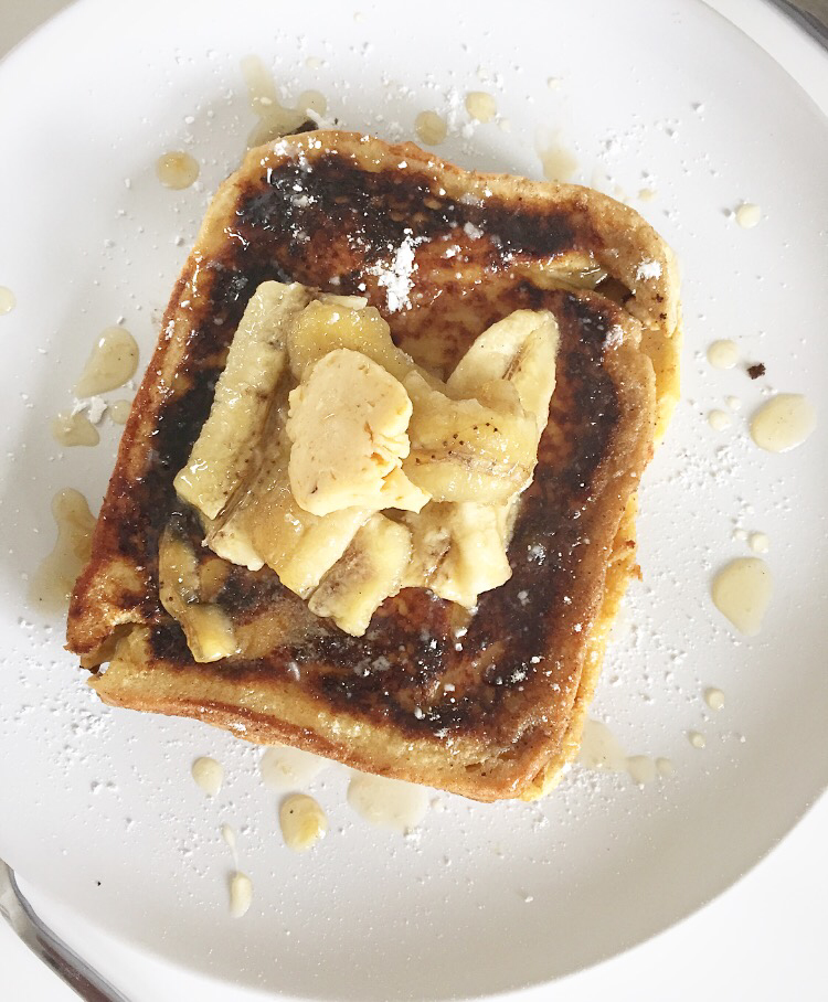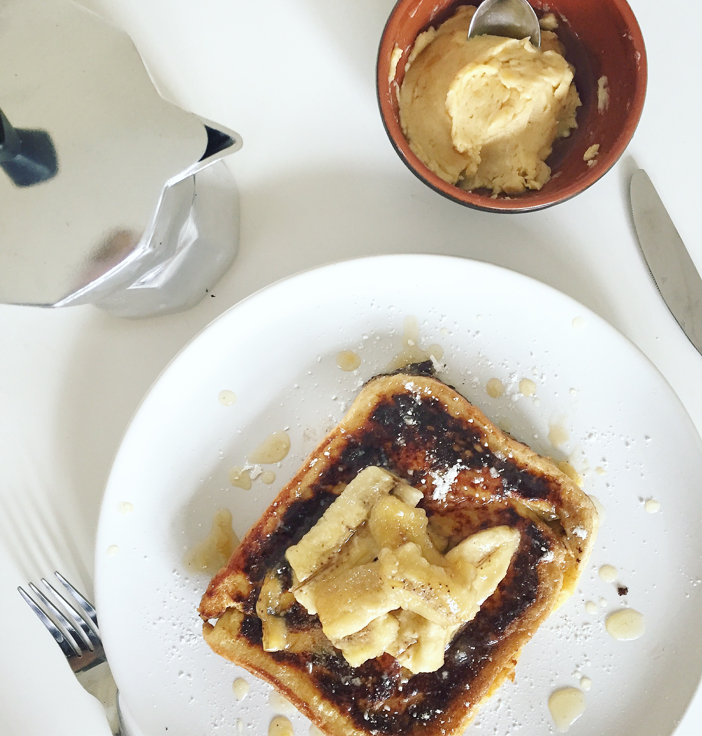 For me, pancakes will always be top choice – for reasons I feel I don’t need to explain. They take me to my happy place and the perfect medicine for someone with an extreme sweet tooth! Close behind however is the French toast, in all its cinnamony, eggy, grilled glory! Usually I love to top it with fresh fruit and some cream or natural yoghurt until I had some overripe bananas looking sad and sorry for themselves and the caramelised banana sensation was discovered! I have Fern Green to thank for her maple butter recipe, found in her book Breakfast. It’s a gorgeous book and just further proof that Breakfast is the best meal of the day.